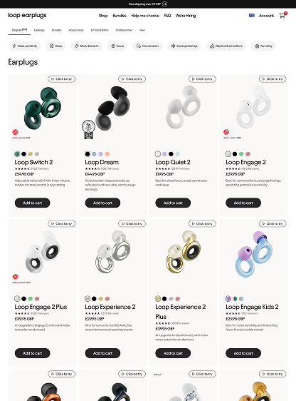 For Loop Earplugs’ e-commerce platform, we delivered a clean, purposeful UI and intuitive UX flow centered around making hearing protection easy to explore and purchase.